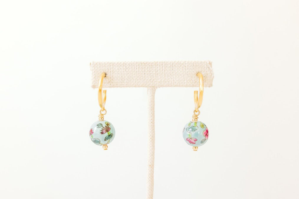 Asian inspired painted porcelain bead on small matte gold hoop is the perfect complement to any of our mahjong bracelets or necklace.